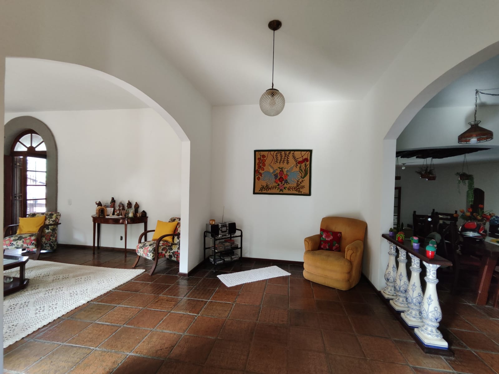 Casa com cerca de quatrocentos e quarenta metros quadrados de área construída. Na parte superior da casa são quatro salas sendo uma sala de estar, um hall de entrada, uma sala de jantar e uma sala de TV. Duas dessas salas tem varanda, uma varanda grande. Quatro quartos na parte superior Sendo duas suítes e dois quartos com um banheiro que atende aos dois.
